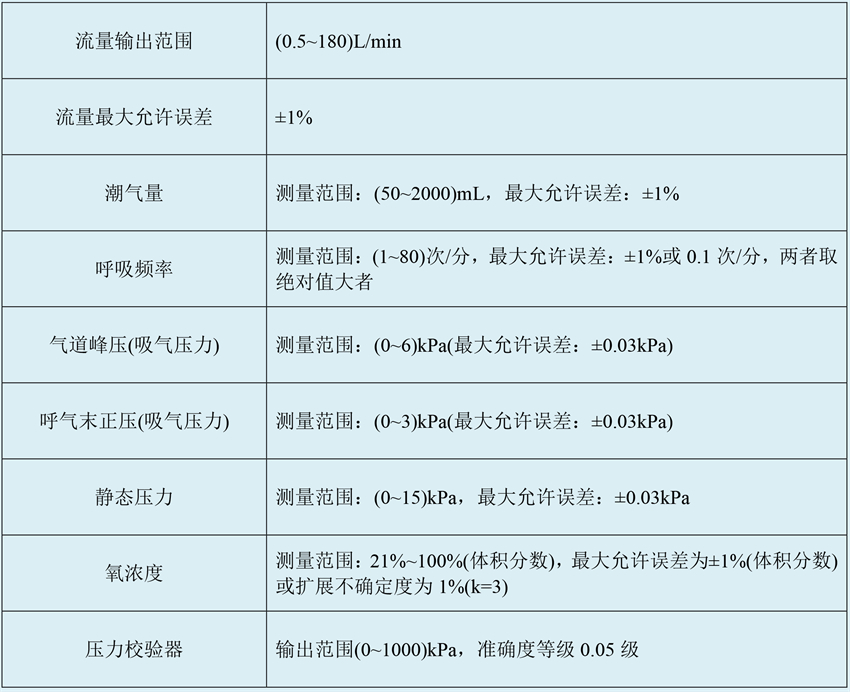 滿足JJF 1234-2018《呼吸機校準規范》、JJF1997-2022《無創呼吸機校準規范》、JJF 1998-2022《急救和轉運呼吸機校準規范》中對呼吸機校準設備的要求,可對不同廠家生產的各種型號呼吸機測試儀進行校準,滿足國家計量檢定系統量值傳遞要求,滿足社會公用計量標準的建標要求。